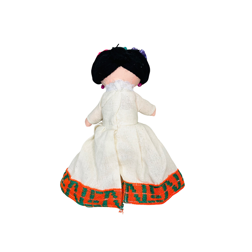 Mexican Handmade Frida Maria Rag Doll with Traditional Dress 7" | Mona de Trapo